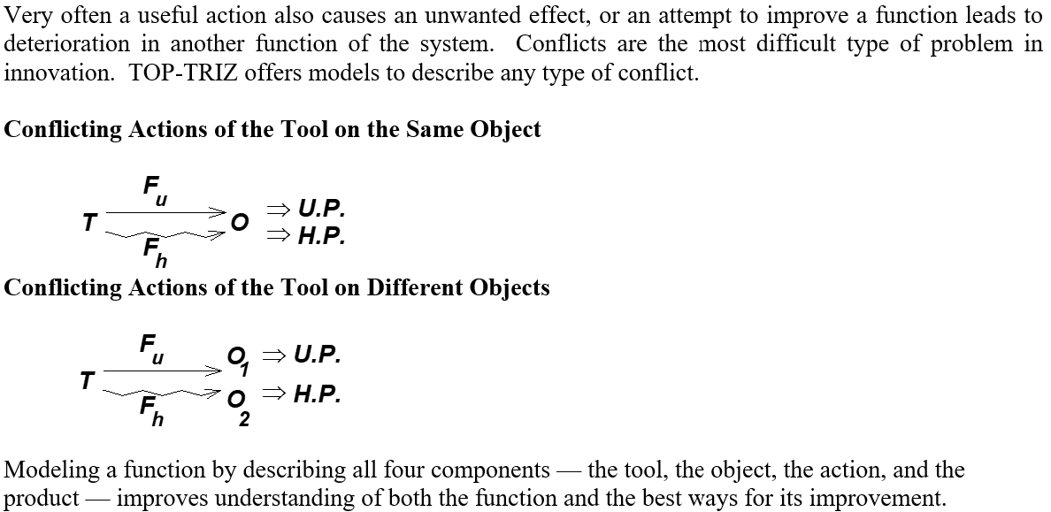 Any single function or a conflict can be considered separately and classified according to TOP TRIZ Flow Chart. Function modeling helps you to understand the system’s performance, state the set of problems to consider, classify the problems, and determine the TRIZ Methods to be applied according to the TOP TRIZ Flow Chart.